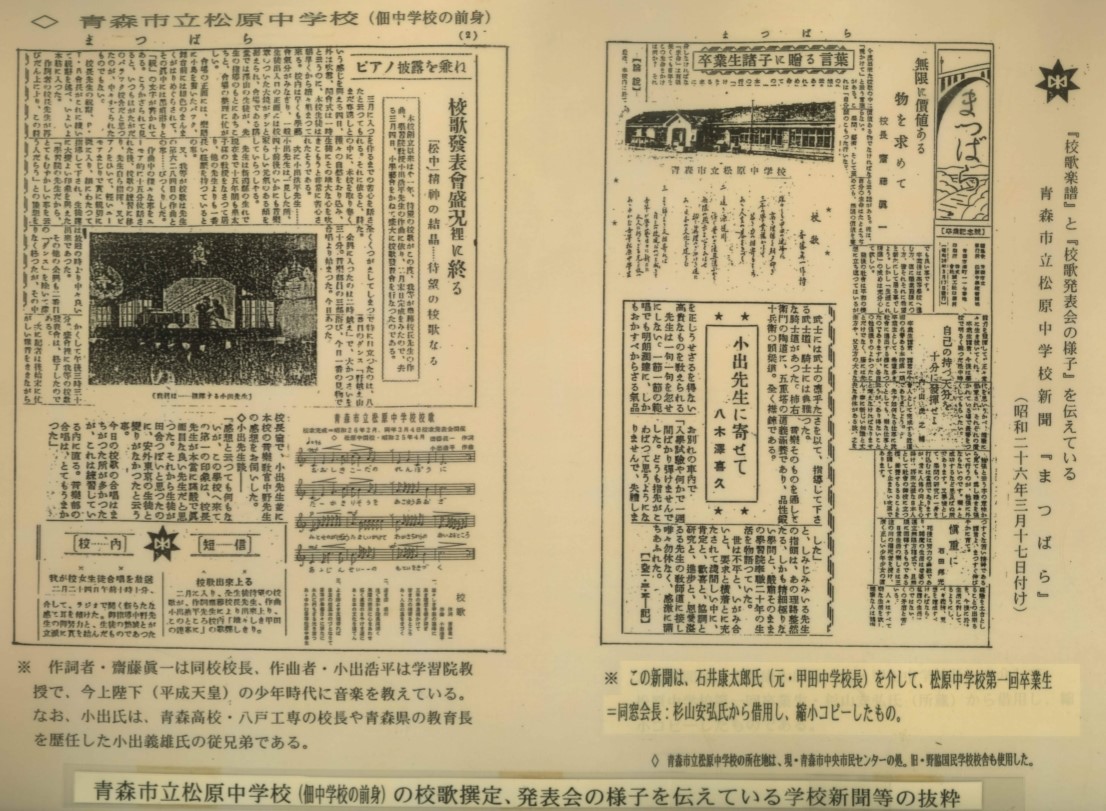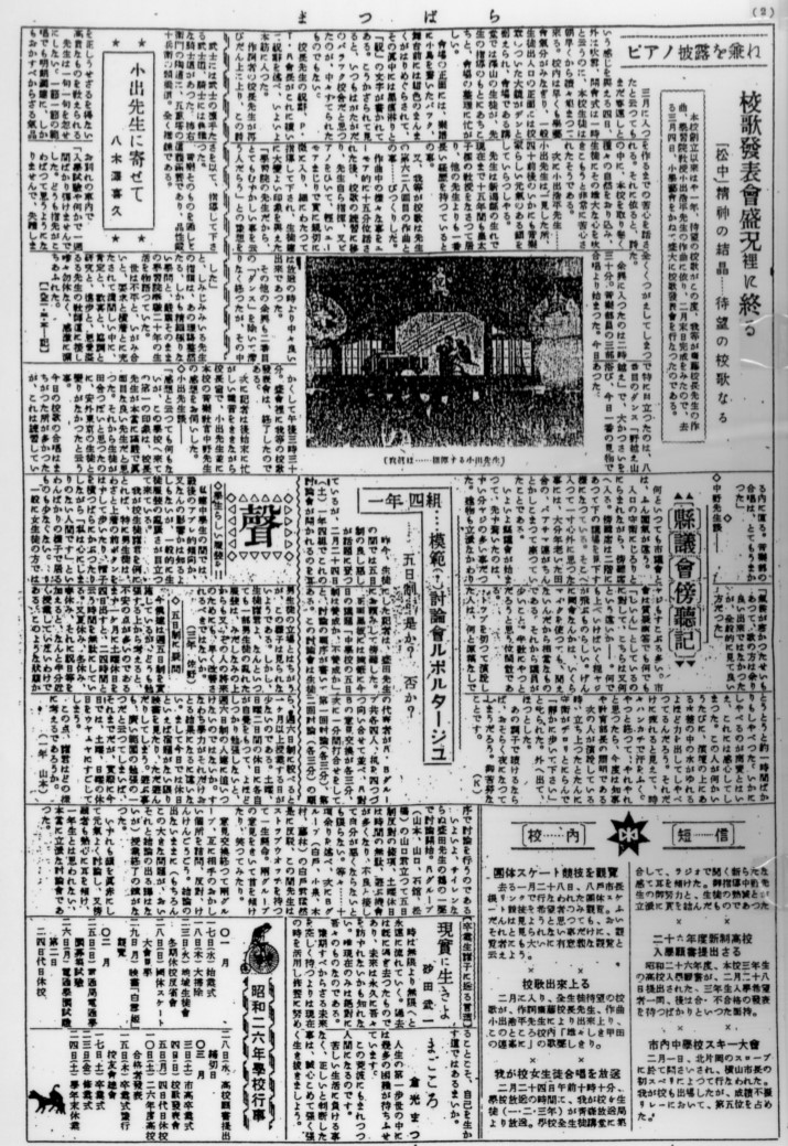 松原中学校の校歌選定、発表会のようすが抜粋されています。