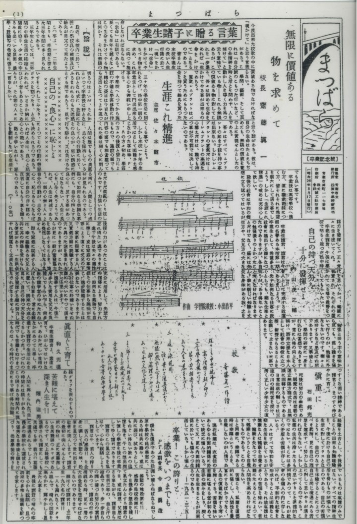 この新聞は、石井康太郎氏(元甲田中学校校長)を介して、松原中学校第一回卒業生 杉山安弘氏(所蔵)から借用し、縮小コピーしたものです。